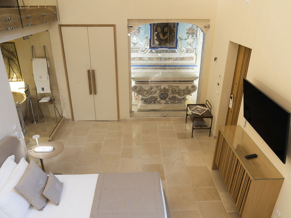 Pendant les travaux de restauration, derrière le mur de la chambre, on a découvert un autel datant du 1800 qui rend la chambre unique dans sa sacralité.