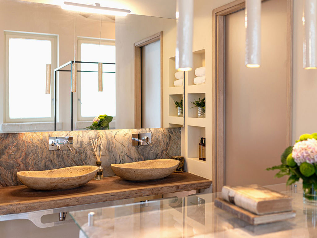 Dopo aver attraversato una terrazza piena di luce e di angoli verdi si accede al cortile privato della camera con una grande vasca in marmo che attende di liberarvi dalla stanchezza del viaggio sotto una pergola fiorita.